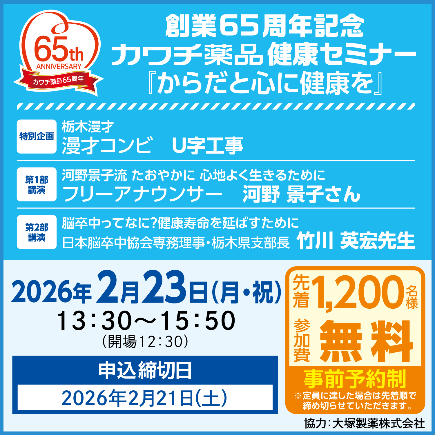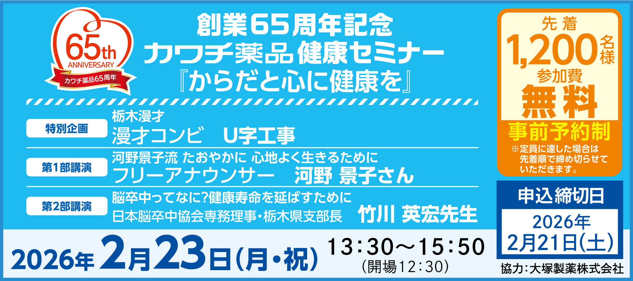 【2/23(月・祝)開催】健康セミナー(宇都宮)へご招待いたします。