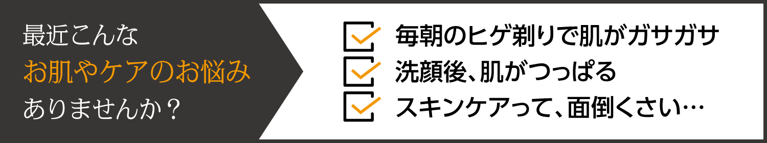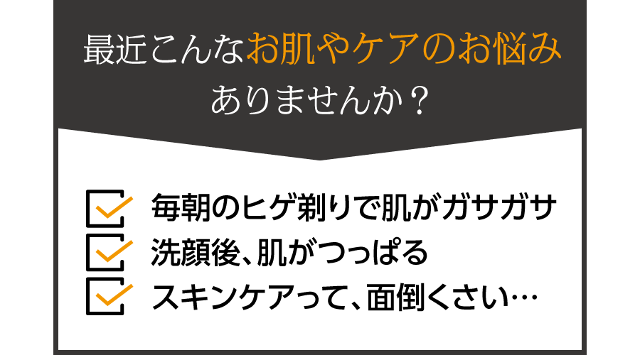 40才からの男のスキンケア。1本で年齢に伴う肌悩みをすべて対策。ベタつかずさっぱりうるおう。