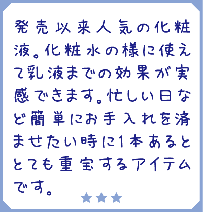 うるおいが満たされた肌へ導く化粧水。