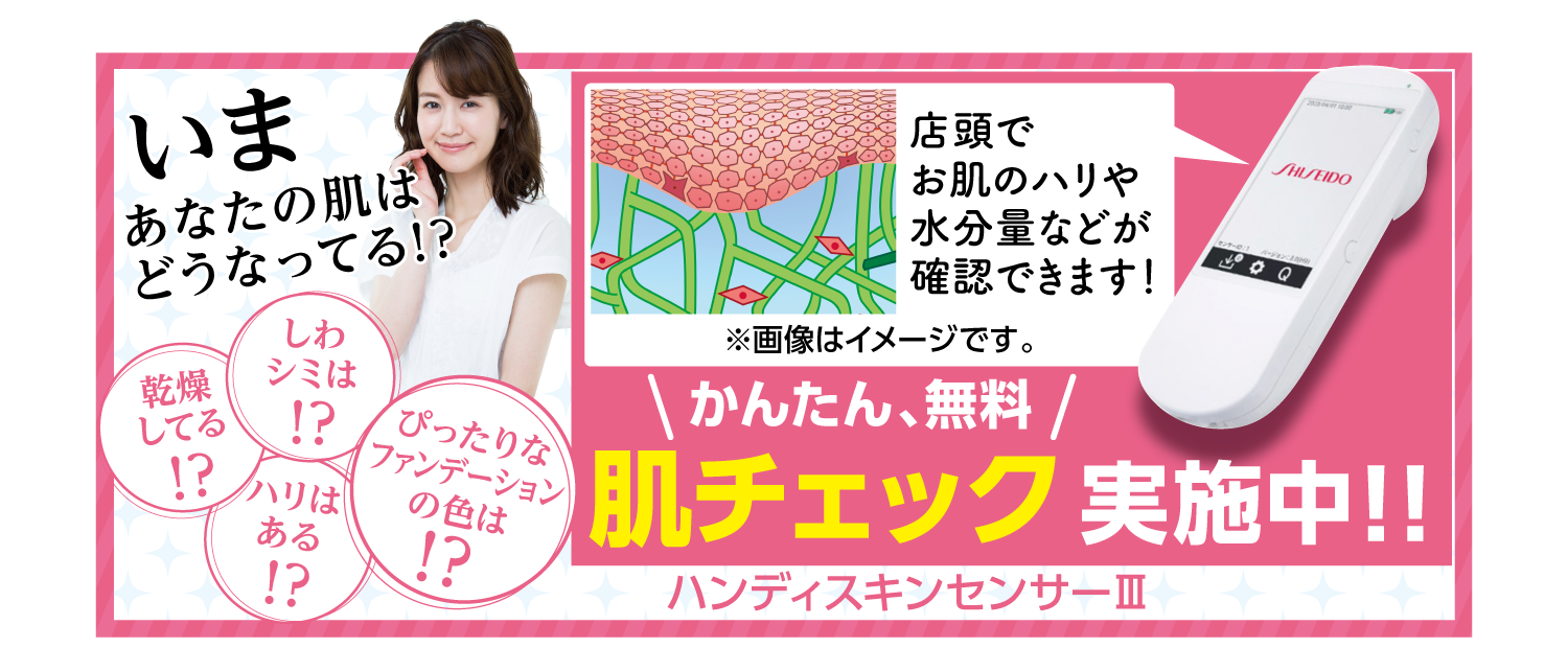 ハンディスキンセンサーでお肌の水分量やハリ、メラニンの量などをチェックしてみましょう!