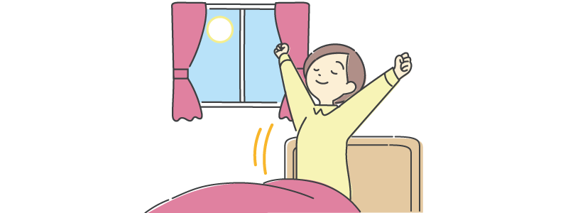 また、日中にお昼寝をする場合は、長すぎると睡眠の質を低下させる恐れがあるため、午後3時までの時間帯に30分以内にとどめましょう。夕方には軽いウォーキングやストレッチ等で体温を上げておくと、就寝時に体温が下がってスムーズな入眠に繋がります。