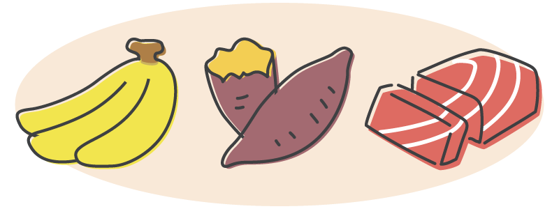 さらに、トリプトファンからセロトニンを合成するには「炭水化物」と「ビタミンB6」が欠かせません。炭水化物はパンやごはん、麺類等、ビタミンB6はバナナやサツマイモ、赤身の魚(マグロやカツオ)等に含まれています。中でも、バナナはトリプトファン、炭水化物ビタミンB6の3つを含みつつ忙しい朝に手軽に食べやすい食品です。このほかにも、睡眠の質を高める働きがあるといわれている「GABA」「L-テアニン」等が含まれる機能性表示食品もあります。