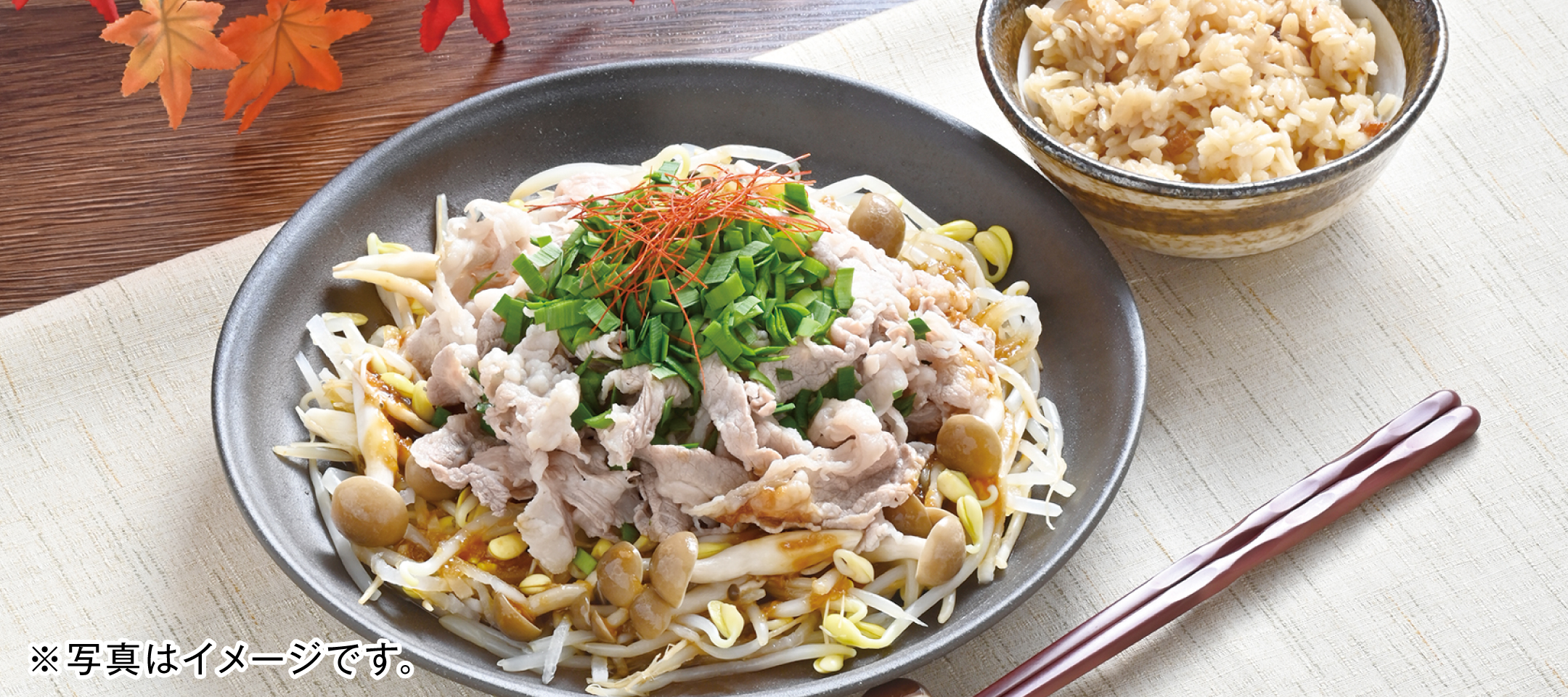 | (3) | 鍋に湯を沸かし、(2)、もやし、しめじを入れて1分茹でたら水気を切る。 | |