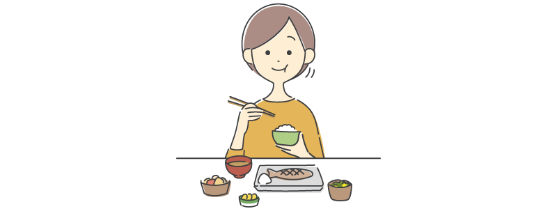 膝には、歩く時は体重の2~3倍、階段の上り下りをする時は6~7倍もの負担がかかっているといわれています。そのため、膝関節にかかる負担軽減のためにも、適正体重を維持することが重要です。ついつい食べ過ぎてしまうという方は、一口あたり30回を目標によく噛み、間食は1日200kcalを目安に抑えると良いでしょう。
