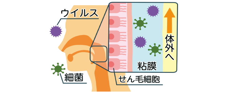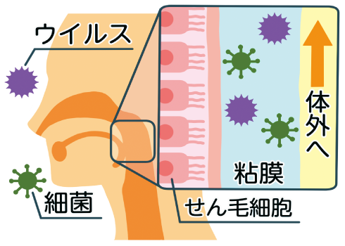 粘膜に吸着する菌やウイルスを洗い流す