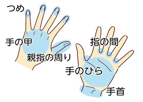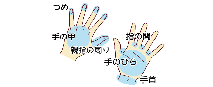 手洗いで大切なのは菌や汚れをしっかり落とすこと。せっけんを使い、指の間や爪の周りなど、洗い残しやすい場所も意識して丁寧に洗いましょう。