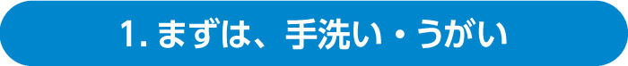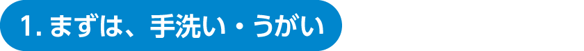 手洗いは手指などに付着したウイルスを物理的に除去するために有効な方法です。うがい薬はのどの洗浄や殺菌により口腔を清潔に保ちます。帰宅後の手洗い・うがいは習慣化しましょう。