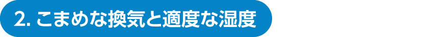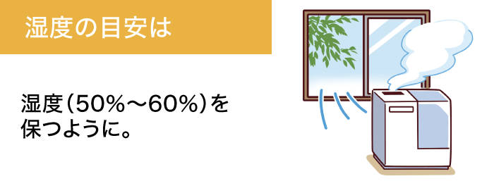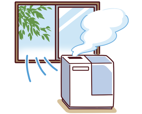 空気が乾燥すると、のどの粘膜の防御機能が低下します。乾燥した室内では加湿器などを使って、のどにとって十分な湿度(50〜60%)を保つことも効果的です。また、こまめな換気も忘れずに行いましょう。