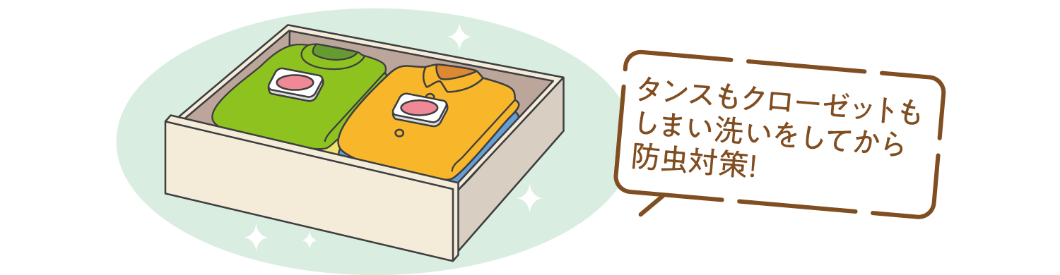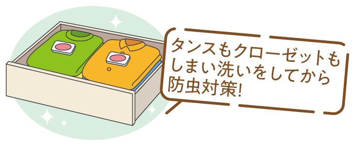 水洗いできるものは洗濯機で洗うか、クリーニングに出すなどして、しまい洗いを徹底しましょう。