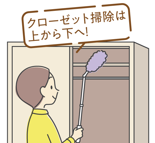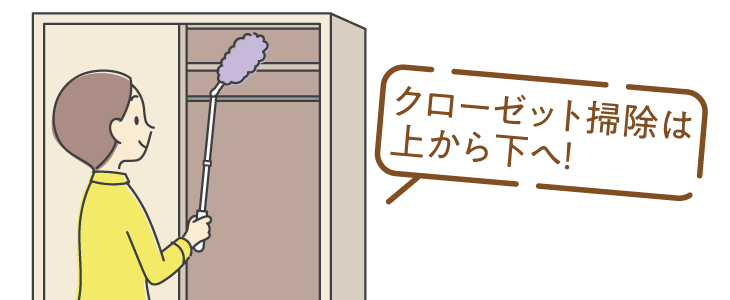 クローゼット内のホコリは乾いているため、ホコリ用モップやドライシートで拭き取るのが効果的です。