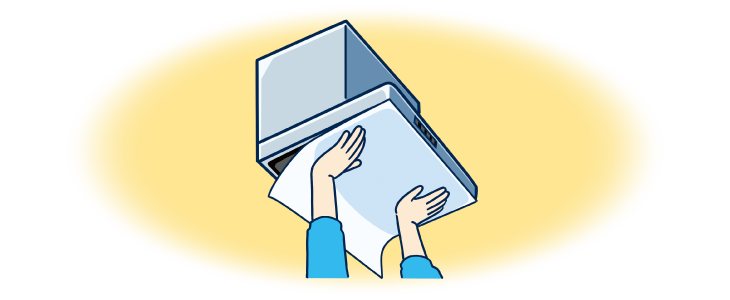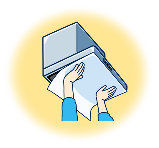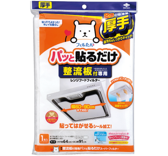 シールのようにパッと貼るだけ!整流板の汚れと内部に入り込む油煙をキャッチするフィルター。