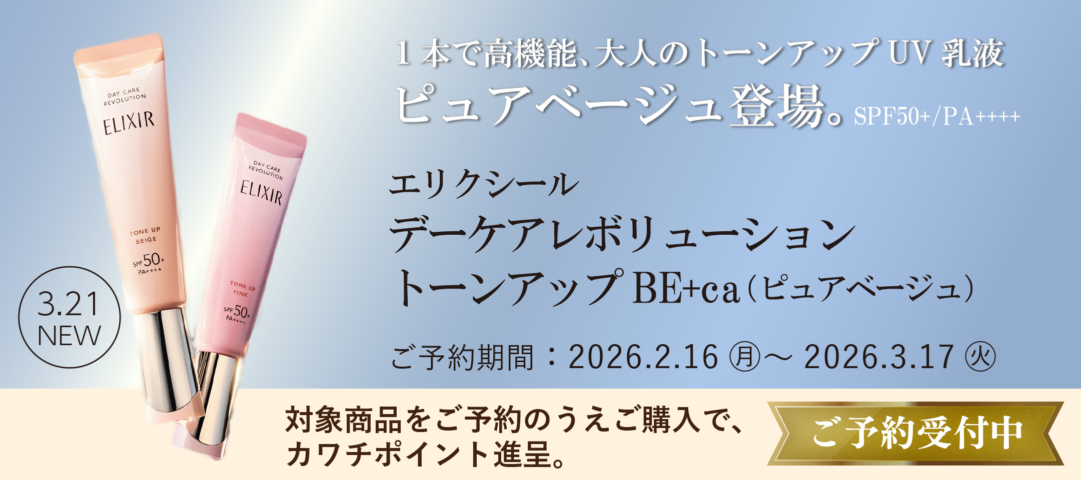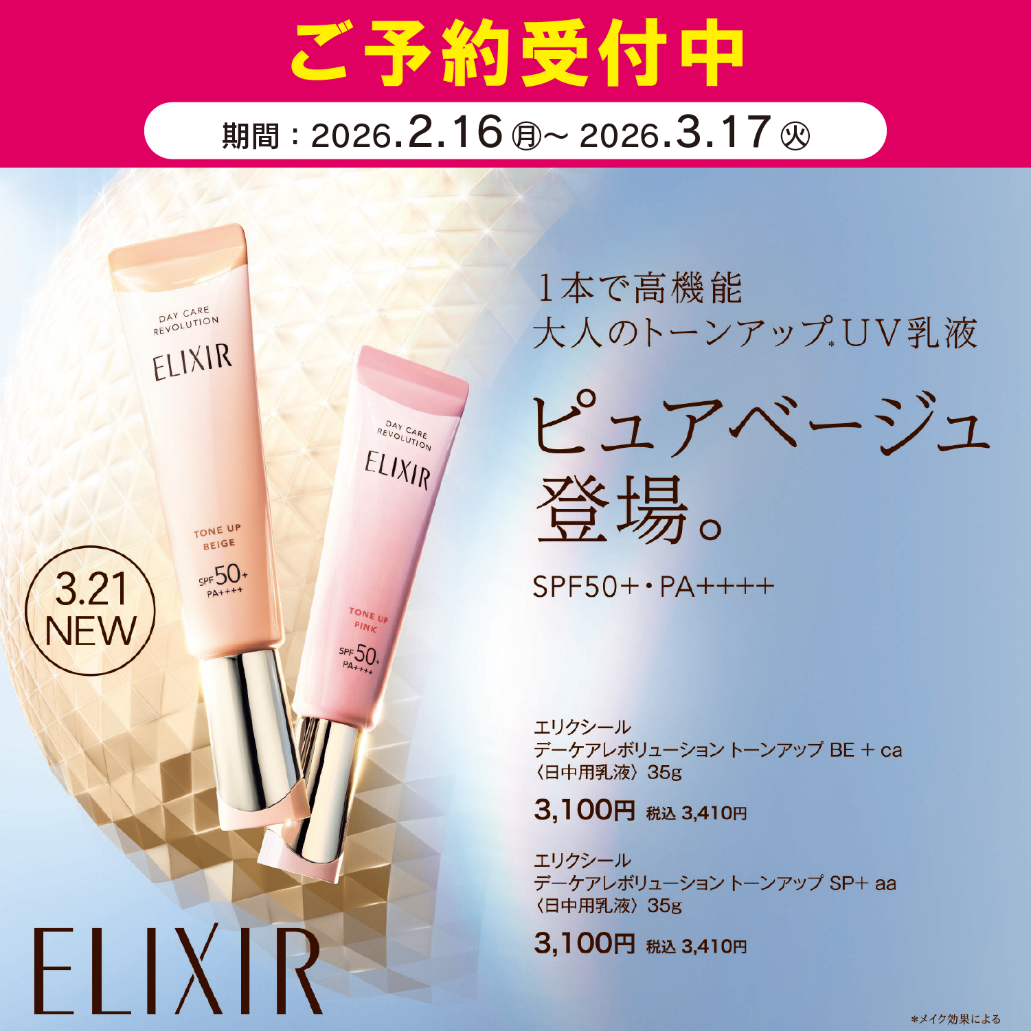 【3.21新発売】エリクシール デーケアレボリューション トーンアップ<ピュアベージュ>ご予約で、もれなくカワチポイントプレゼント!