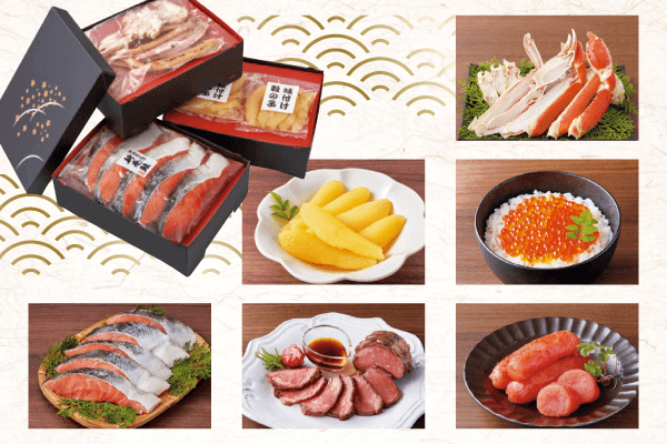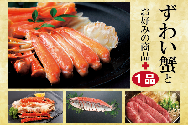 殻上側半分だけ取り除き食べやすくした、年末に最適なボイルずわい蟹と、冬の味覚を1品選べるギフトです。