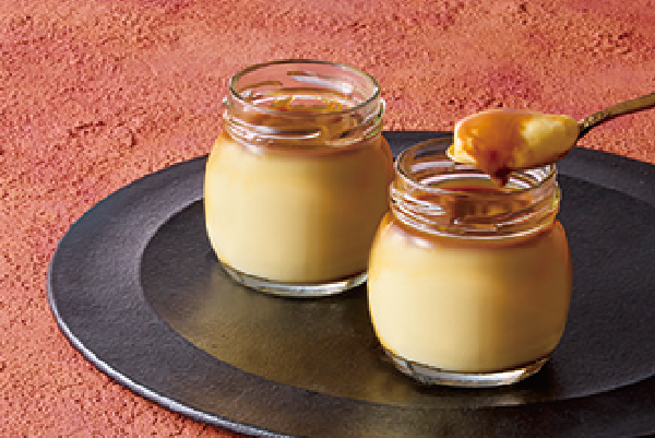 希少価値の高い生乳を使用した濃厚な味わいのプリンの上に、焦がしバターキャラメルソースをかけました。