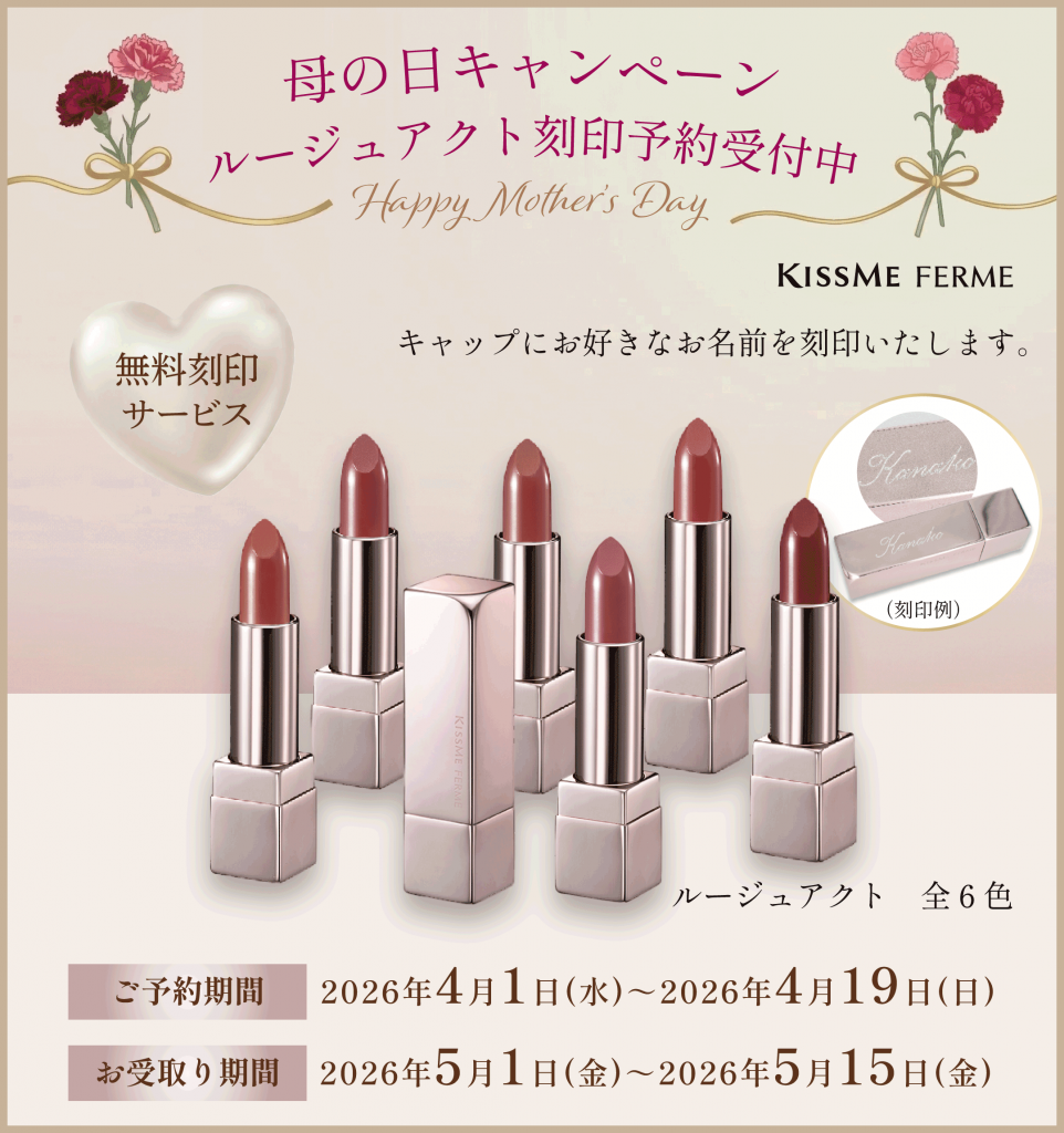 キスミーフェルム「ルージュアクト」のキャップにお好きなお名前を刻印いたします。